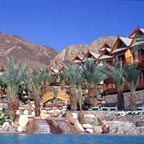 Self-contained vacation village about five minutes from downtown Eilat, built on the side of a mountain facing the Gulf of Eilat and the Mountains of Edom. The rooms are designed as wooden Thai pagodas, each with a central space and sleeping galleries suitable for children. The village has a bath house that offers Thai spa treatments.